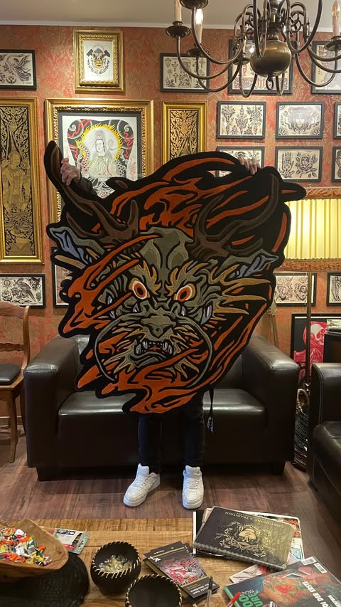 @AugustoDeFilippo — based in Rome, tattooing out of @agutrad. Known for his traditional Japanese work, his style is unreal. He created the Dragon tapestry and Oni rug for us, bringing a fresh, modern edge to the collab while staying true to the roots.